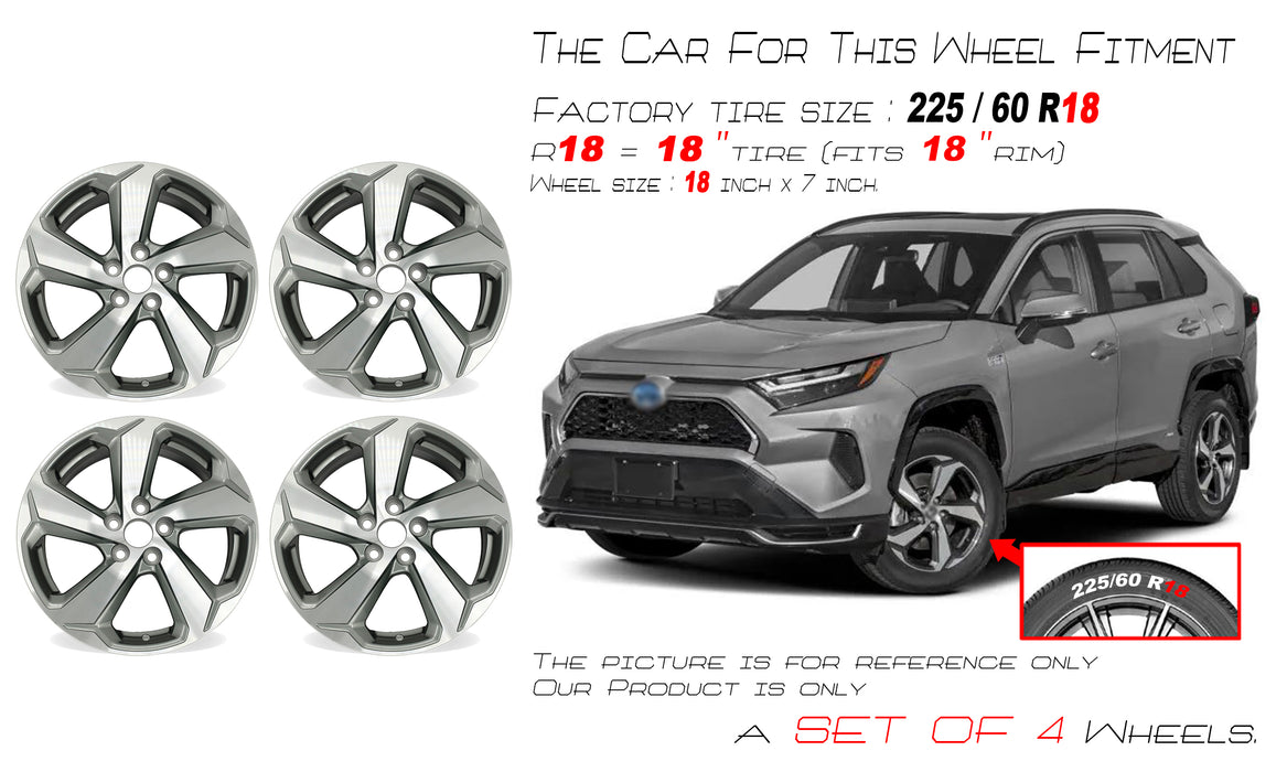 18” SET OF 4 18x7 MACHINED DARK GREY Wheel for TOYOTA RAV4 2021 2022 OEM Design Replacement Rim