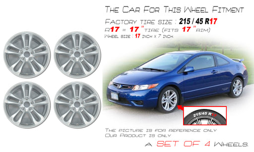 Original price $936.96Original price $936.96 - Original price $936.96Original price $936.96Current price $617.96$617.96 - $617.96Current price $617.96For Honda Civic OEM Design Wheel 17" 17x7 2006-2011 Silver Set of 4 Replacement Rim 42700SVBA01 42700SVBA02